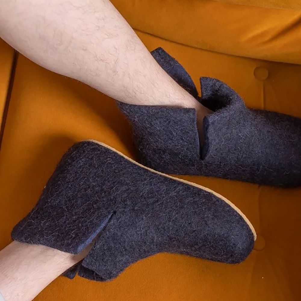 Модель Wild — самая высокая и теплая. Для удобства надевания на ней есть разрезы, которые при необходимости можно увеличить обычным канцелярским ножом. Валенки сделаны на свободной финской колодке и даже немного большемерят — зато ноге не тесно. А еще войлок в процессе носки усаживается по ноге — значит, такие домашние валенки подойдут и самым капризным.