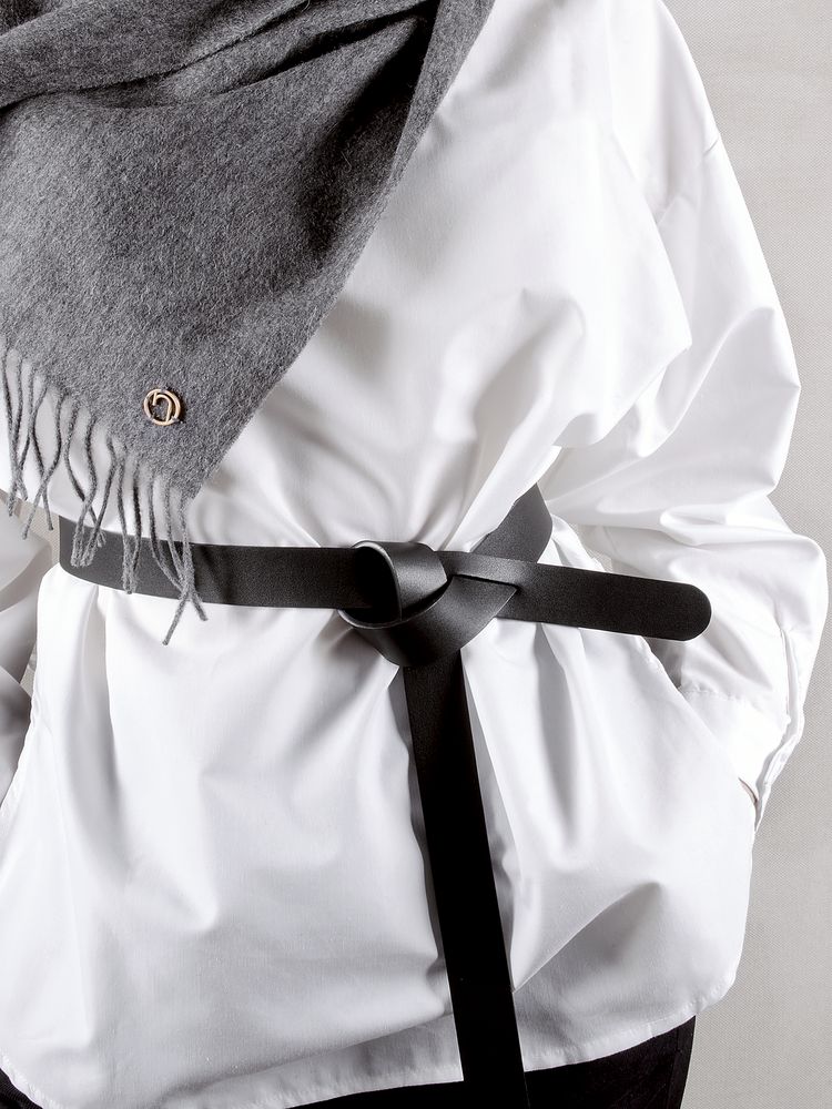 Если одни ремни выделяются своими пряжками, то этот — ее отсутствием! Благодаря лаконичному дизайну и всего лишь одной прорези ремень Romance можно завязывать по своему усмотрению, создавая расслабленный или наоборот, четкий классический силуэт.