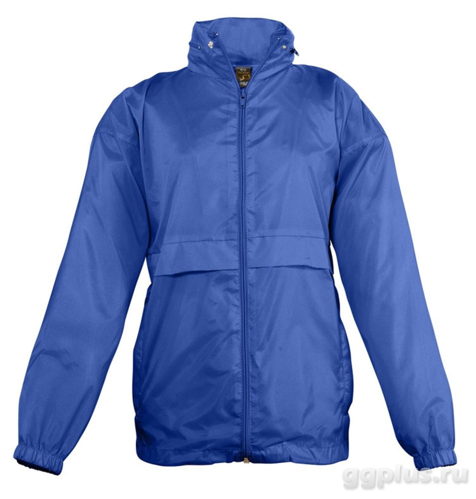 Водонепроницаемая, вентиляционные отверстия, безопасный шнур по низу изделия. Капюшон убирается в воротник. Два наружных кармана на молнии. Ветровка может быть сложена в карман и закреплена эластичным ремнем на талии. Без подкладки.