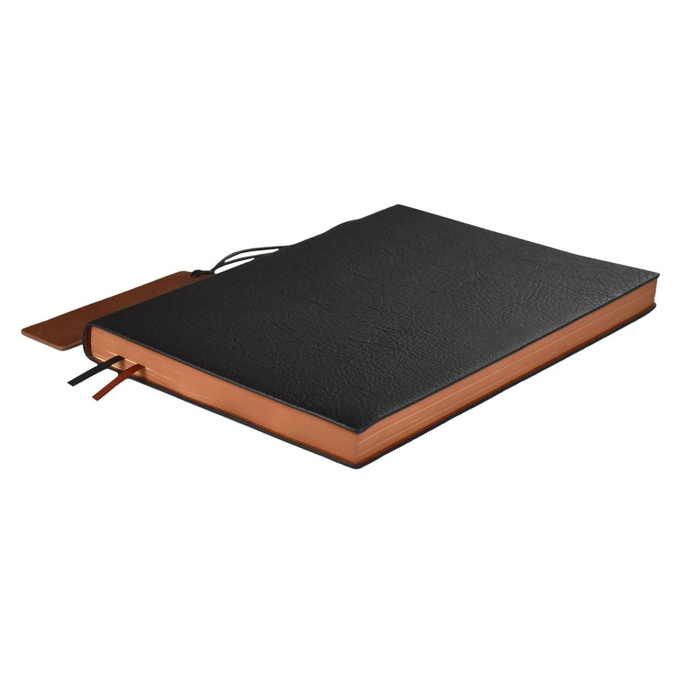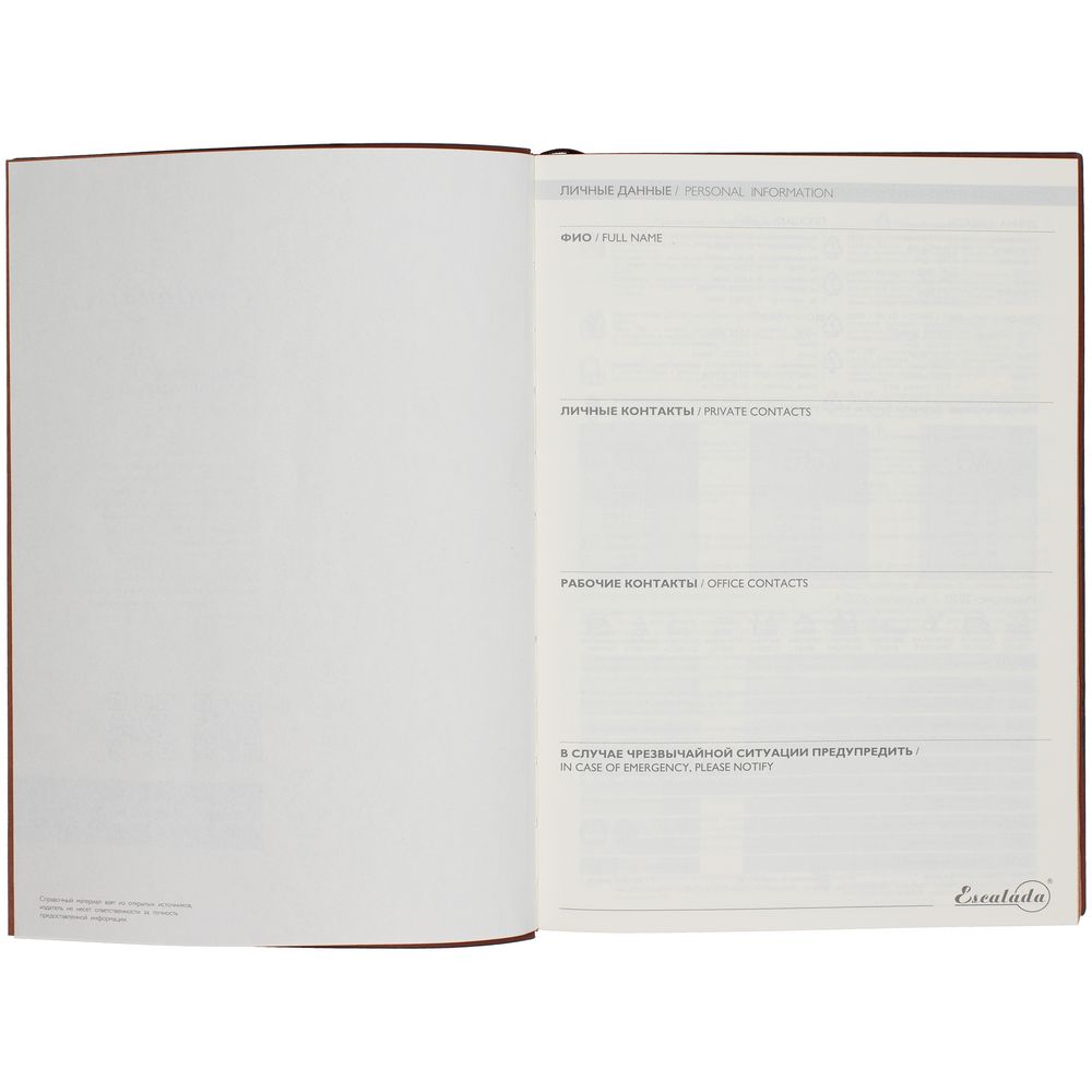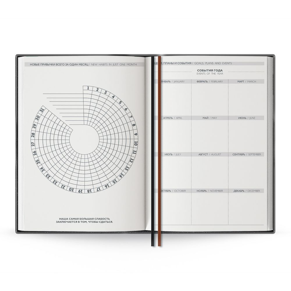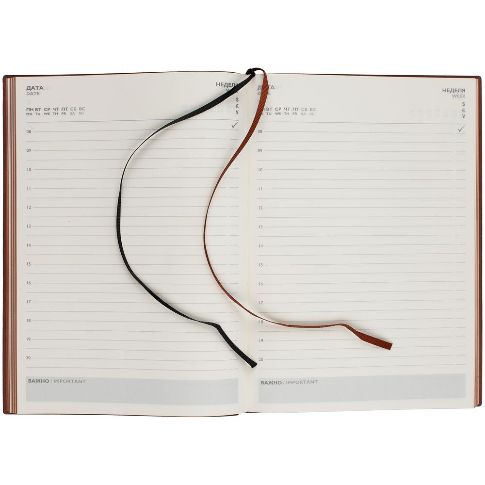 Ежедневник с гибкой обложкой и закладкой из искусственной кожи, дополнен капталом и двойным ляссе.