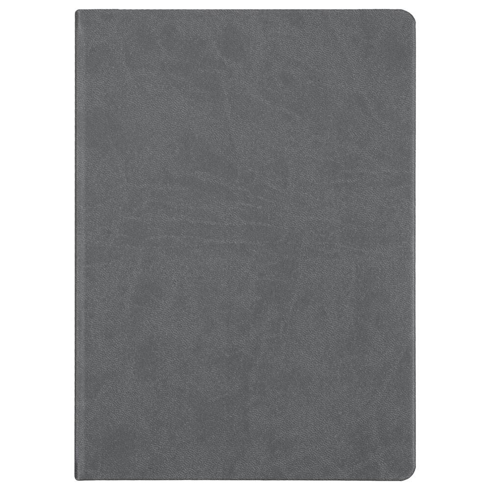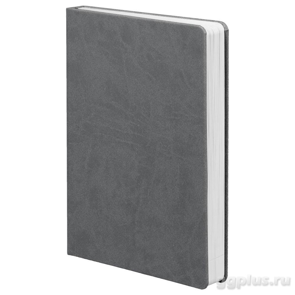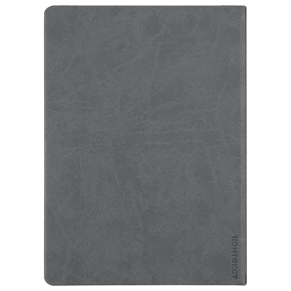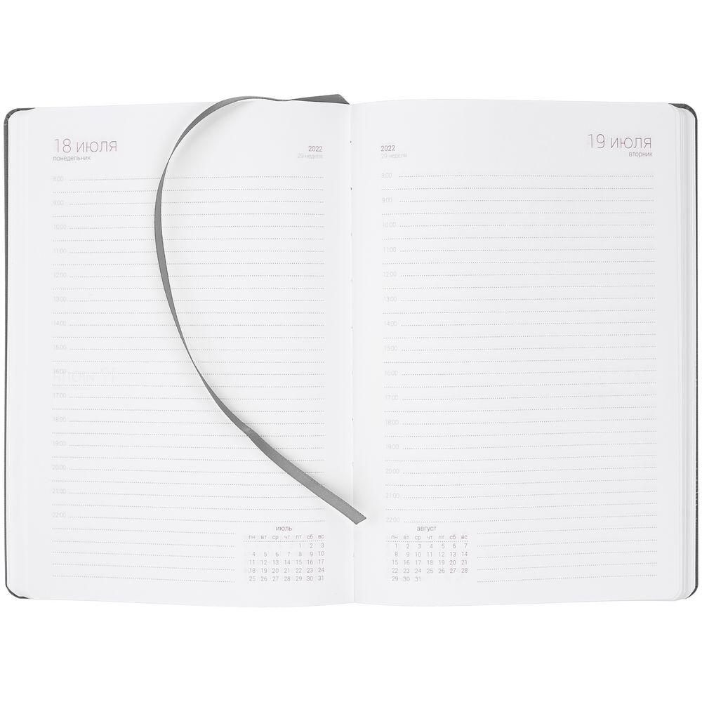 Ежедневник с твердой обложкой, выполнен из материала Latte, темно-серый ЕЕ, дополнен ляссе в цвет обложки.