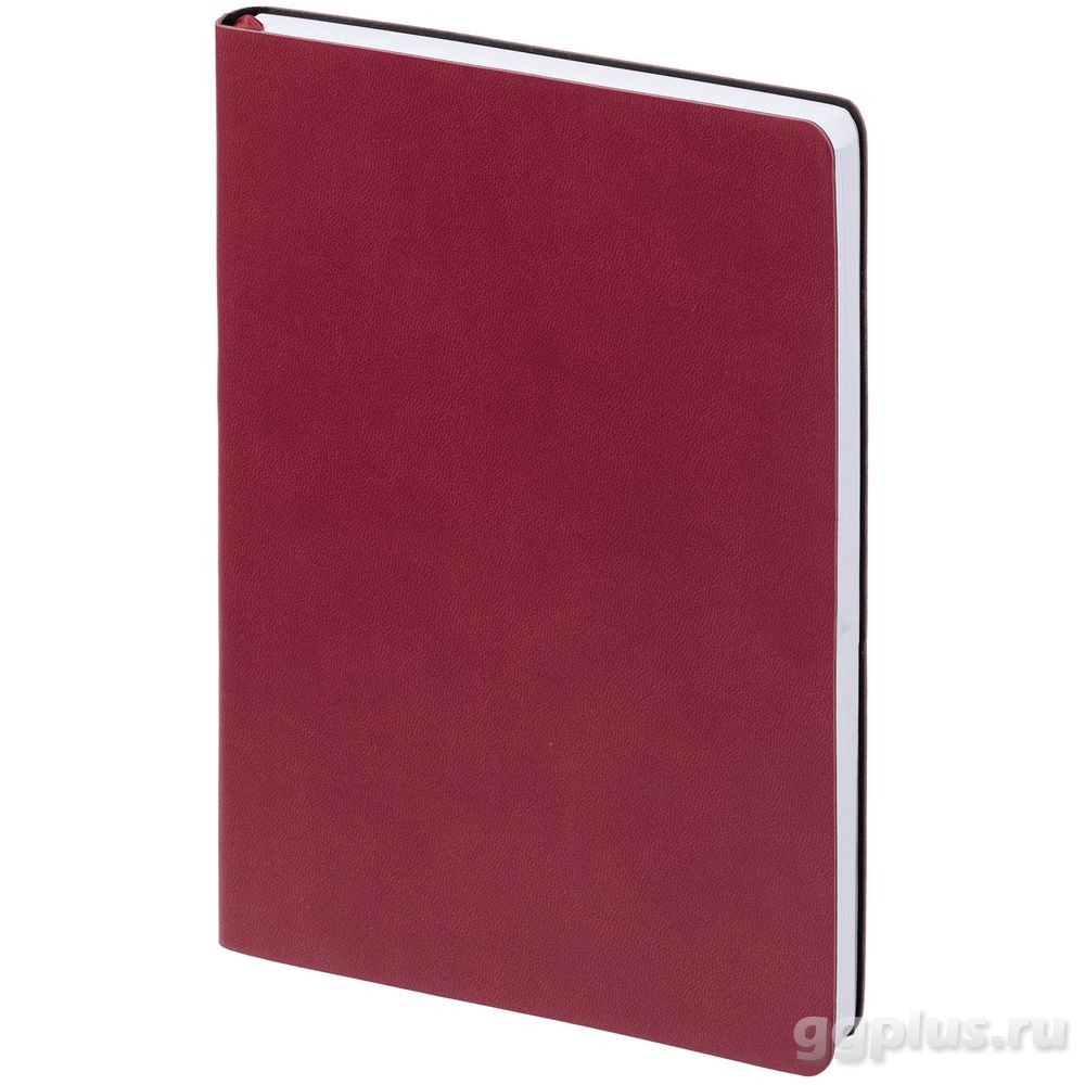 Ежедневник с гибкой обложкой, выполнен из материала Latte, бордовый, дополнен ляссе в цвет обложки.