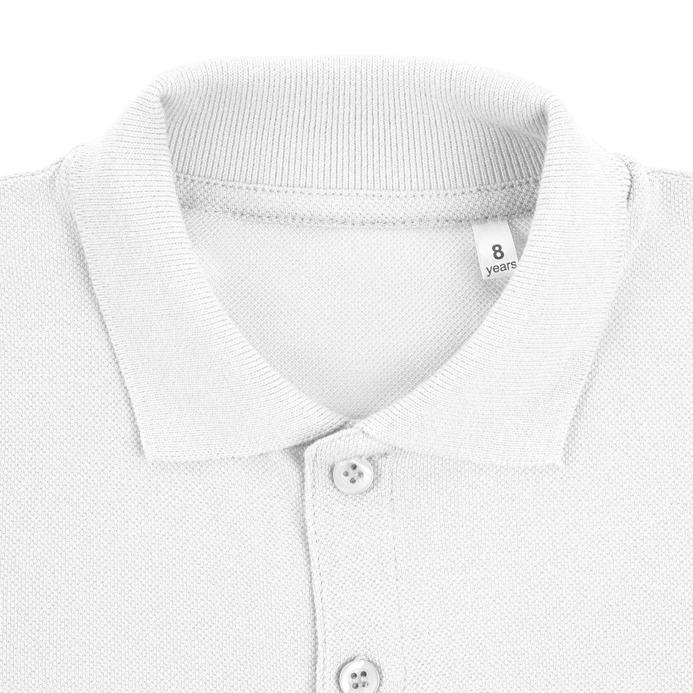 Классическая детская рубашка поло с разрезами в боковых швах по низу изделия, воротом с лайкрой и пуговицами в тон.