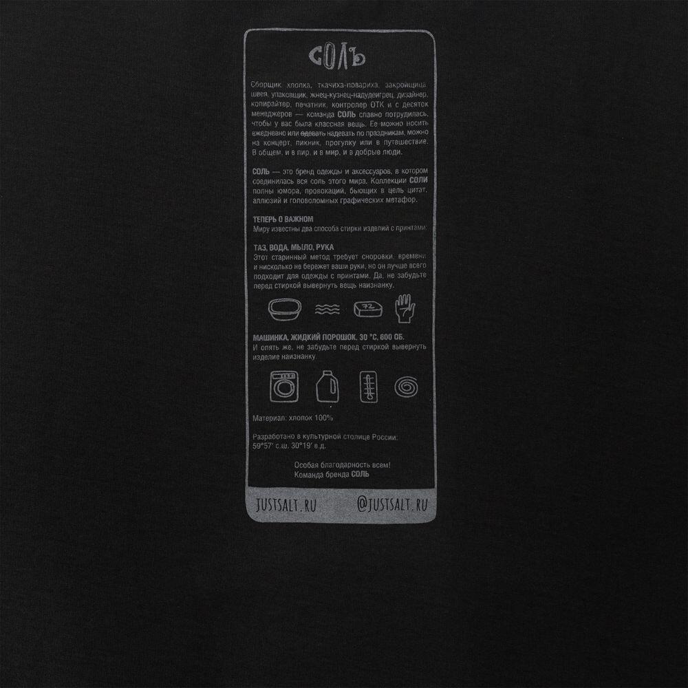 Принт с информацией о бренде и инструкцией по уходу за изделием на изнаночной стороне футболки.