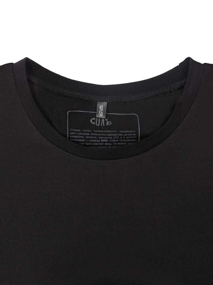 Футболка унисекс со спущенным плечом и круглым вырезом, отделанным резинкой.
