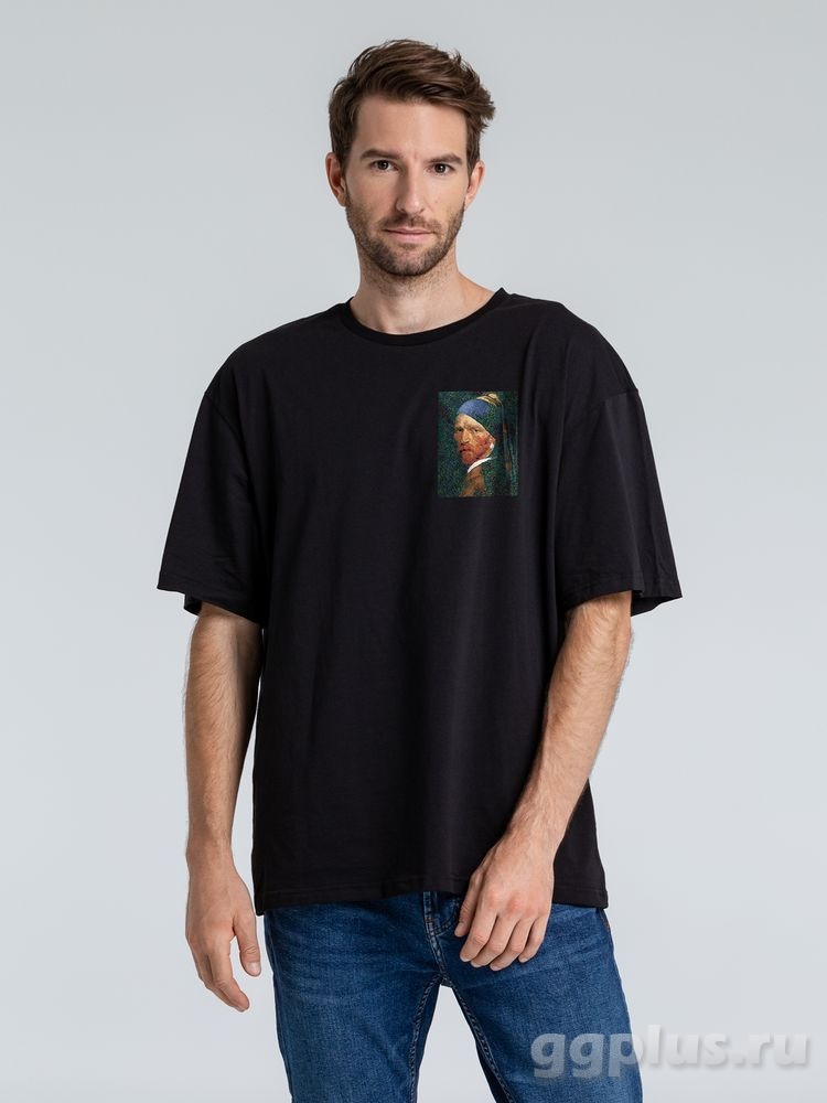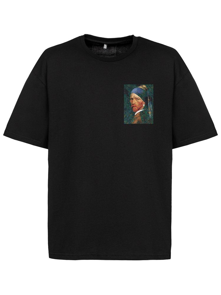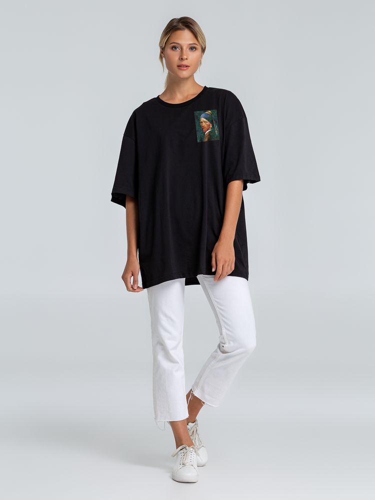 Футболка оверсайз «Мужчина с жемчужной сережкой», черная