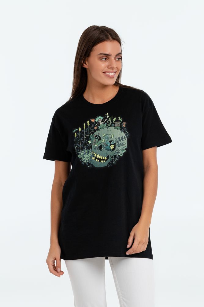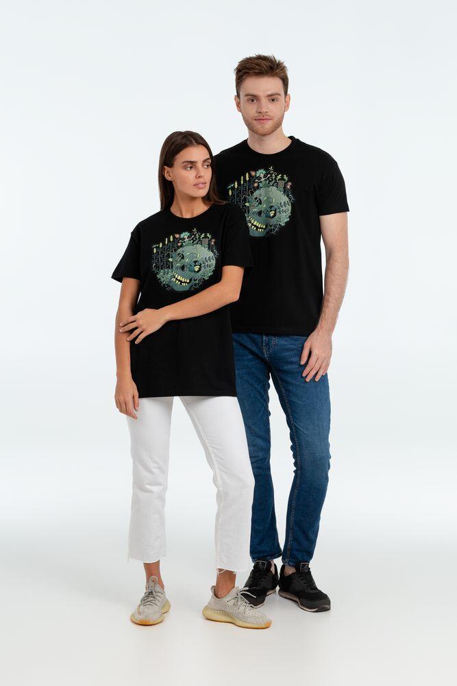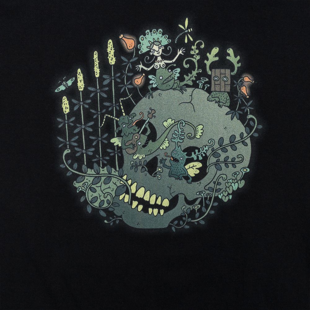 Дизайн футболки «Серенада» представляет собой своеобразную русскую готику в остроумном переосмыслении художника.