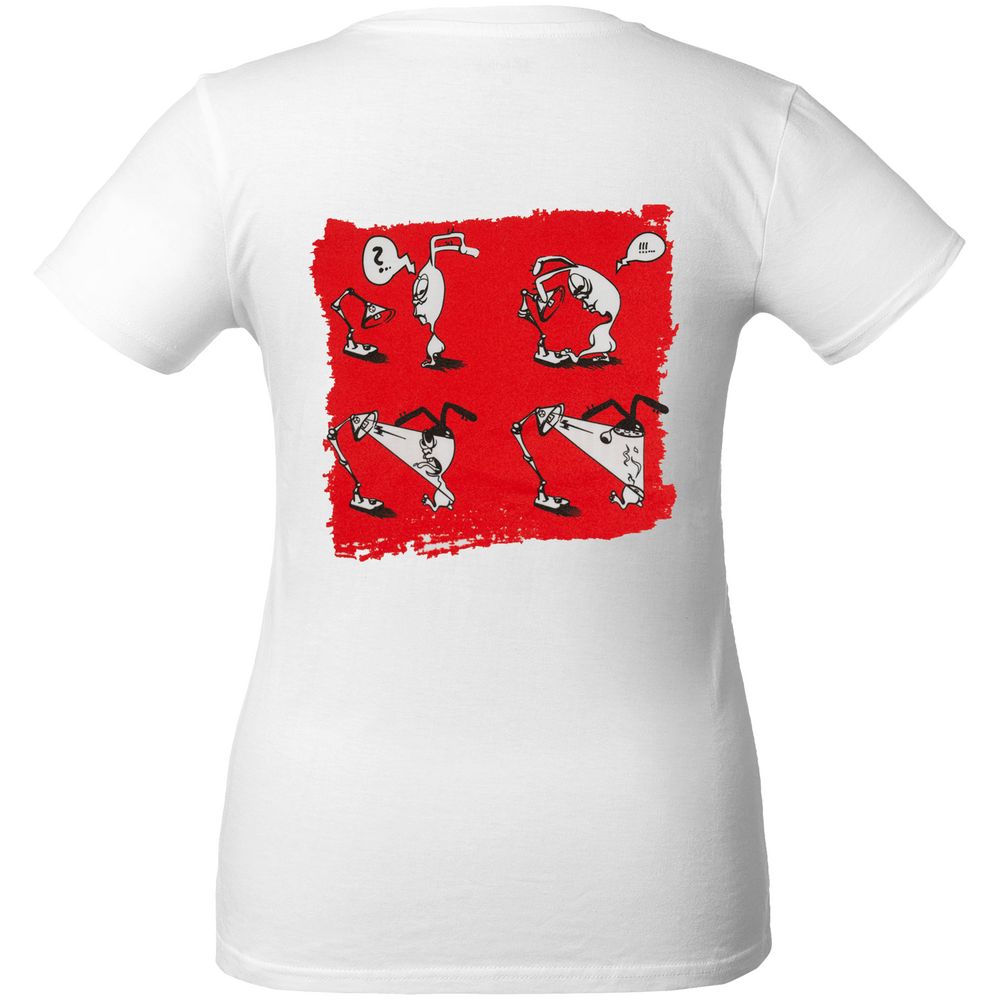 Перед вами поучительная история персонажа, который был несколько недальновиден и теперь у него буквально ноги от ушей! Эта приятно прилегающая к телу футболка предупреждает: в любой непонятной ситуации… всегда старайтесь разобраться в ситуации!Кроеная женская футболка с круглым воротом-резинкой 1x1.