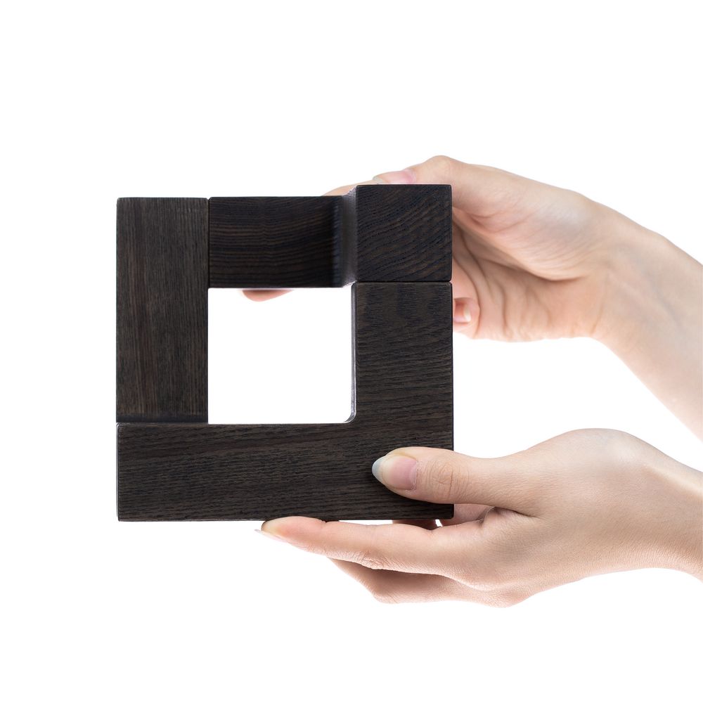 Продуманная конструкция из трех деревянных деталей на магнитах позволяет собрать необычный трехмерный куб, который в зависимости от угла зрения словно меняет свою форму. Потому такой стелой особо символично отметить уникальные качества и достижения награждаемого: профессиональные успехи, личные победы, огромный вклад в развитие команды и общества или нестандартный подход к решению задач.