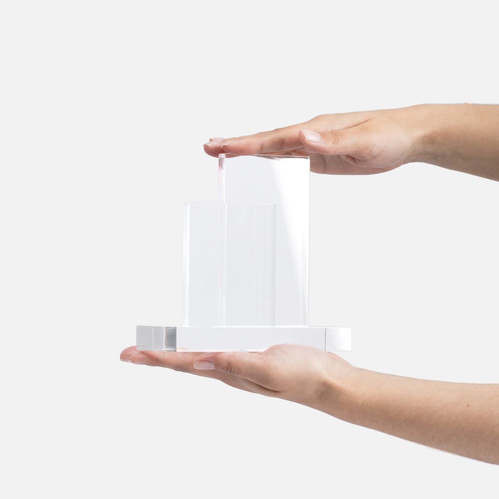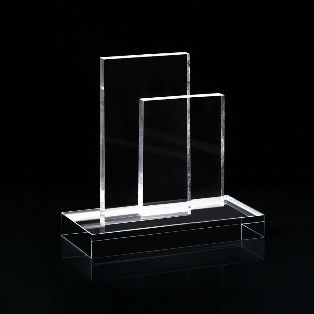 Элегантные линии и прозрачный материал придают стеле Doublet эстетическую привлекательность, позволяя ей гармонично сочетаться с любым интерьером — от офисов до выставочных залов. Акрил (оргстекло) отличается прочностью и легкостью, что обеспечивает долговечность и устойчивость к повреждениям. Благодаря двухуровневой конструкции стела станет прекрасным холстом для идей и творчества и позволит создать уникальную награду со множеством элементов дизайна. Стела Doublet — прекрасный спутник побед и свершений!