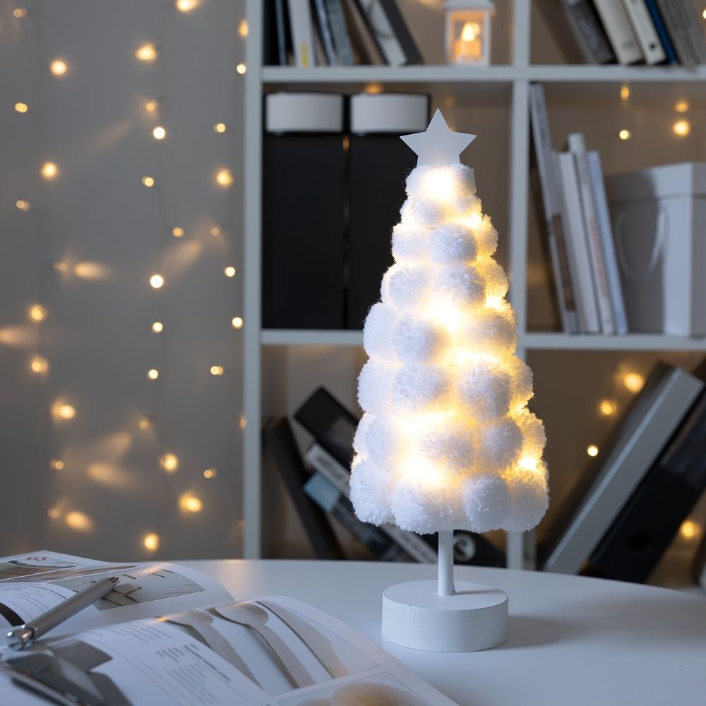 Пушистая елочка лампочками. Работает от 2 батареек ААА (в комплект не входят).