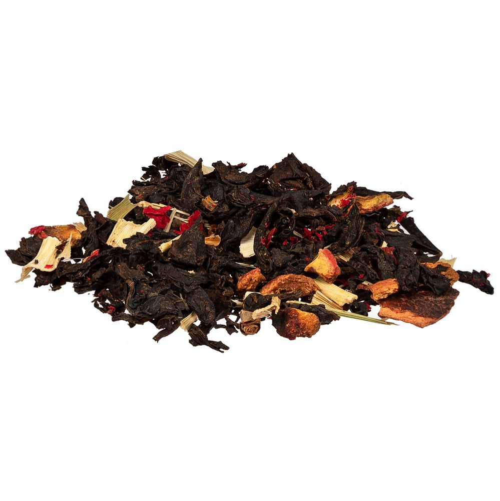 Черный крупнолистовой чай с кусочками ананаса, вишни, лемонграссом, цветками и коркой граната обладает многогранной палитрой вкуса и аромата. В состав чая входят только натуральные ингредиенты, а чайные листья предварительно вымачиваются в соке ананаса: вкус напитка становится особо насыщенным и обогащенным.