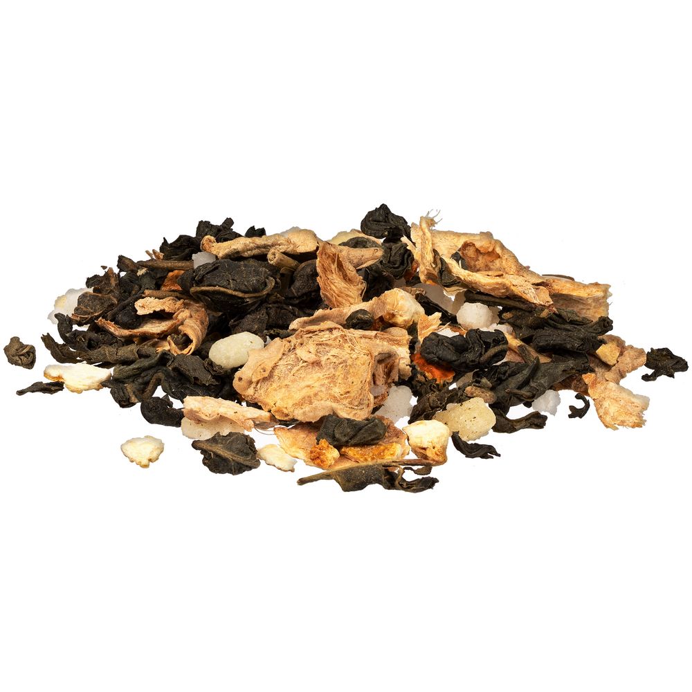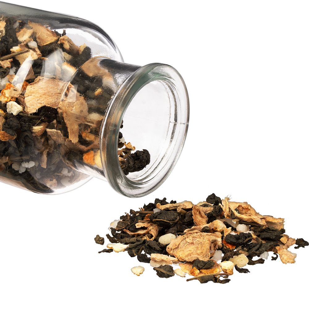 Чай «Сокочай», зеленый с соком имбиря, с кусочками имбиря, апельсина и медом