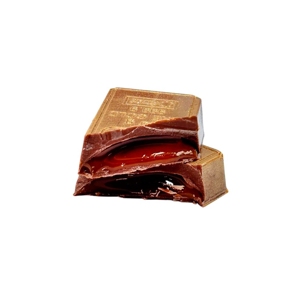Каждая конфета — это миниатюрный золотой слиток, блестящий и манящий, как настоящее сокровище. Растопите его во рту и насладитесь неповторимым вкусом: мягкий молочный шоколад идеально дополняет пикантную сладость соленой карамели, создавая гармоничный и незабываемый вкус.