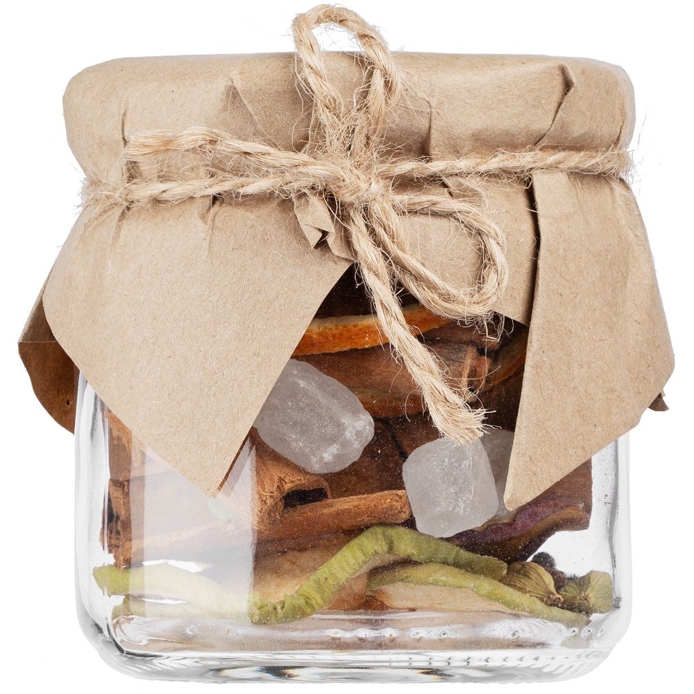 Состав: яблоко сушеное, апельсин сушеный, кардамон, гвоздика сушеная целая, душистый перец горошек, палочки корицы ломанные, сахар леденцовый.
