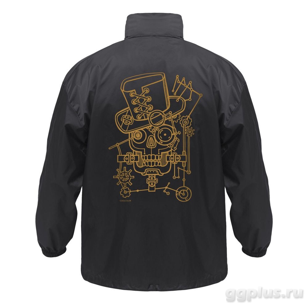 Пришло время впустить пар! Берем пример с Джонни-черепа: бронзовые и латунные оттенки, очки-гогглы, пара дюжин шестеренок и механизмов всех мастей, цепи, колбы и черный цилиндр. Все, теперь ваш образ в стиле стимпанк готов. Можно отправляться в будущее или прошлое – куда пожелаете?Ветровка на молнии с капюшоном и одним карманом с правой стороны.