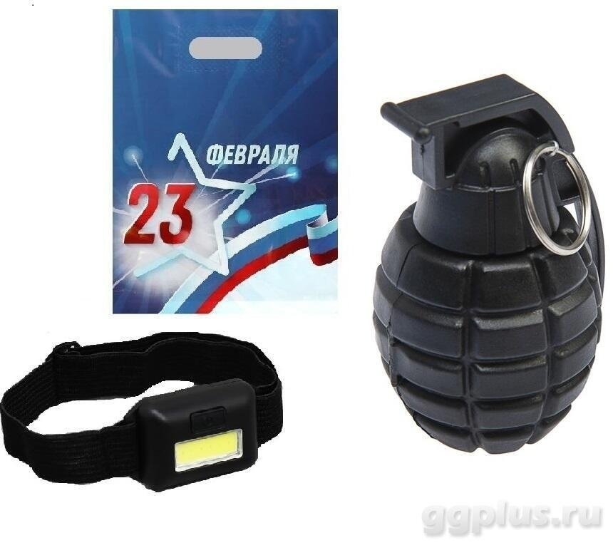 Фонарь налобный и набор отверток "Граната" в подарочном пакете.