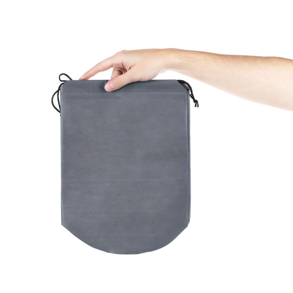 Чехол для пледа Raum выполнен из спанбонда и оснащен утягивающими шнурами.
