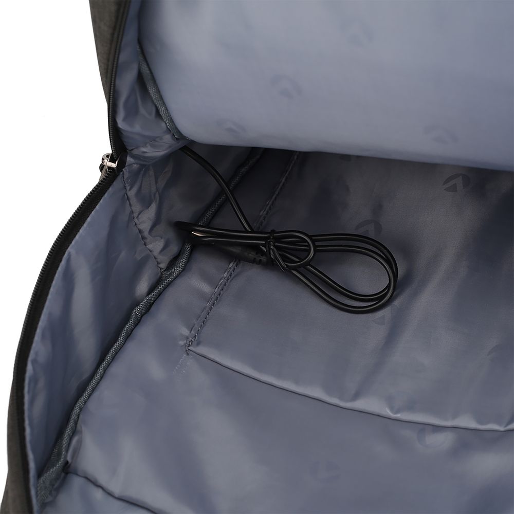 - Внешний USB-порт для зарядки гаджетов (внутри рюкзака — провод для подключения)
