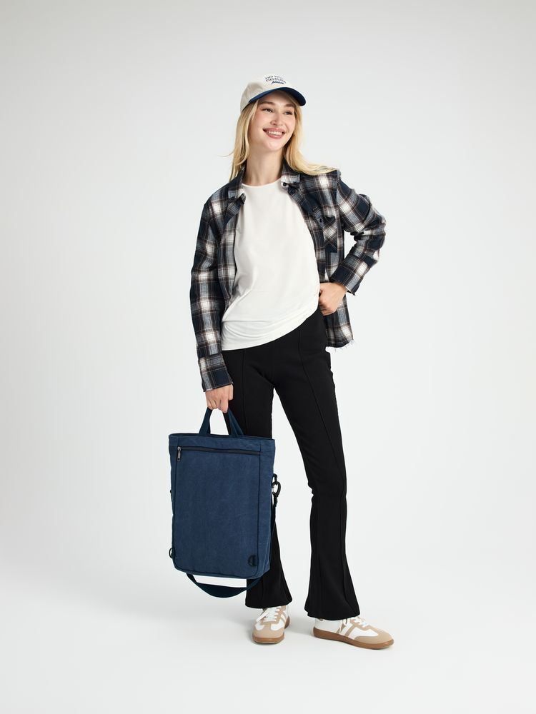 - 2 наплечных регулируемых ремня для использования в качестве рюкзака убираются в карман на молнии