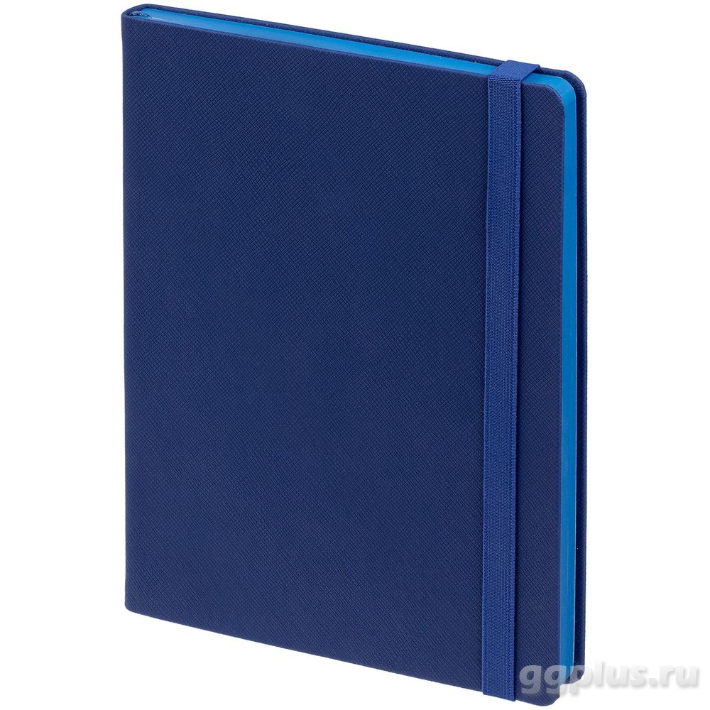 Ежедневник с полутвердой обложкой выполнен из материала Nice Touch, синий НН, и дополнен резинкой шириной 1 см и ляссе синего цвета.