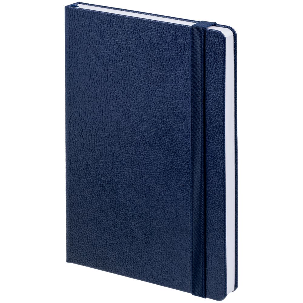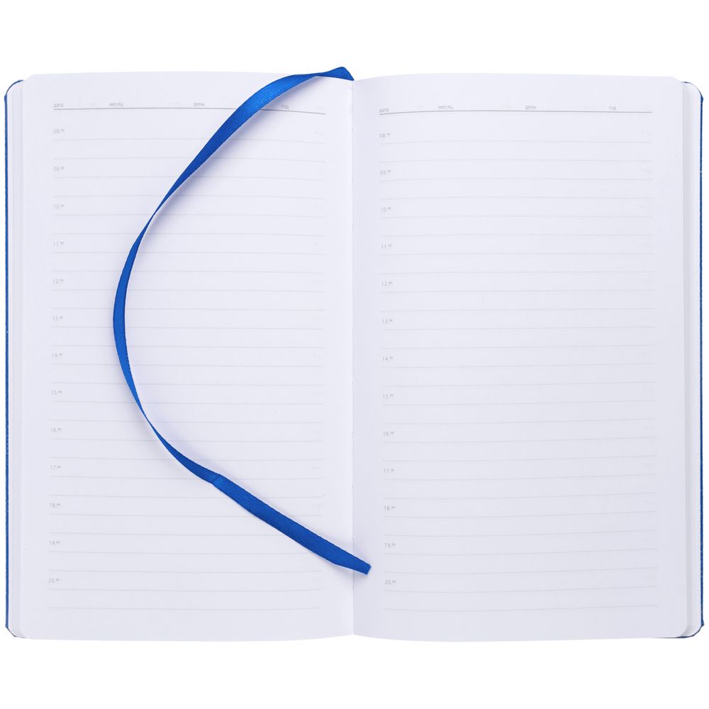Ежедневник с твердой обложкой, выполнен из материала LaFite, синий НН, дополнен резинкой и ляссе в цвет обложки.