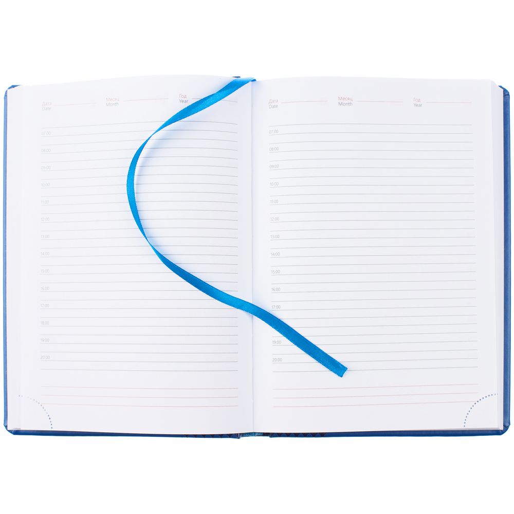 Ежедневник с твердой обложкой, выполнен из материала Waltz, синий НН, дополнен ляссе в цвет материала.