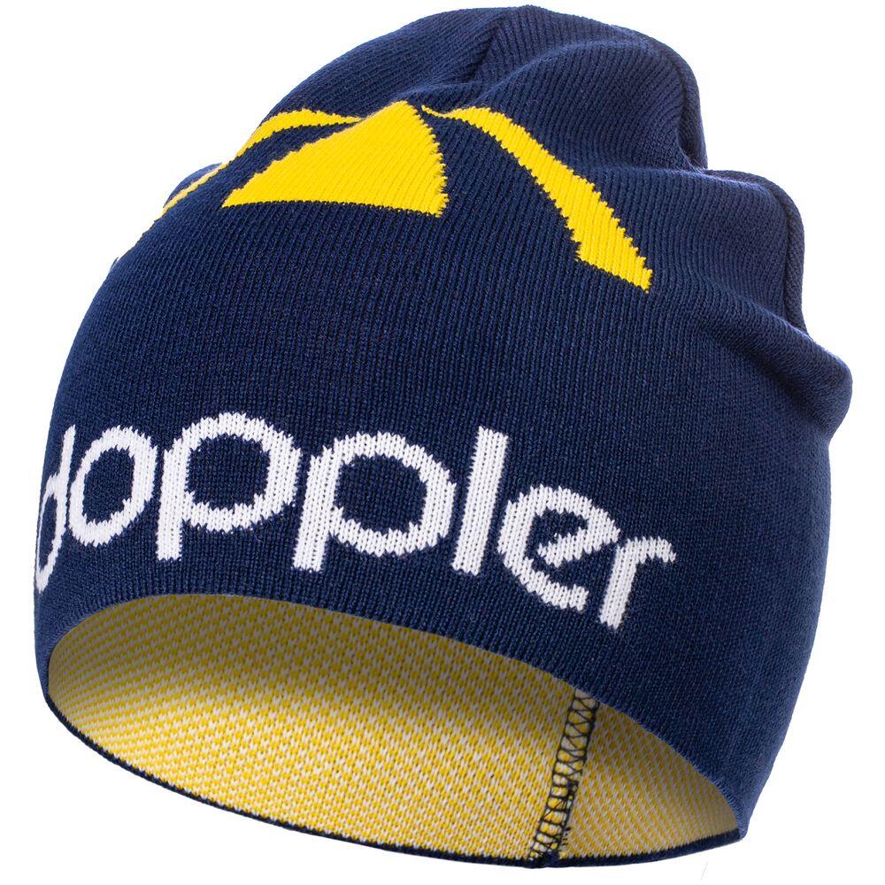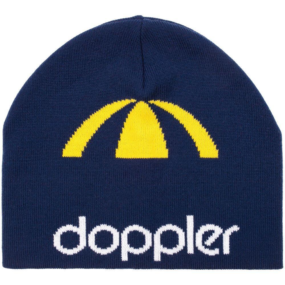 Шапка с вывязанным логотипом и индивидуальным рисунком в фирменной цветовой гамме.