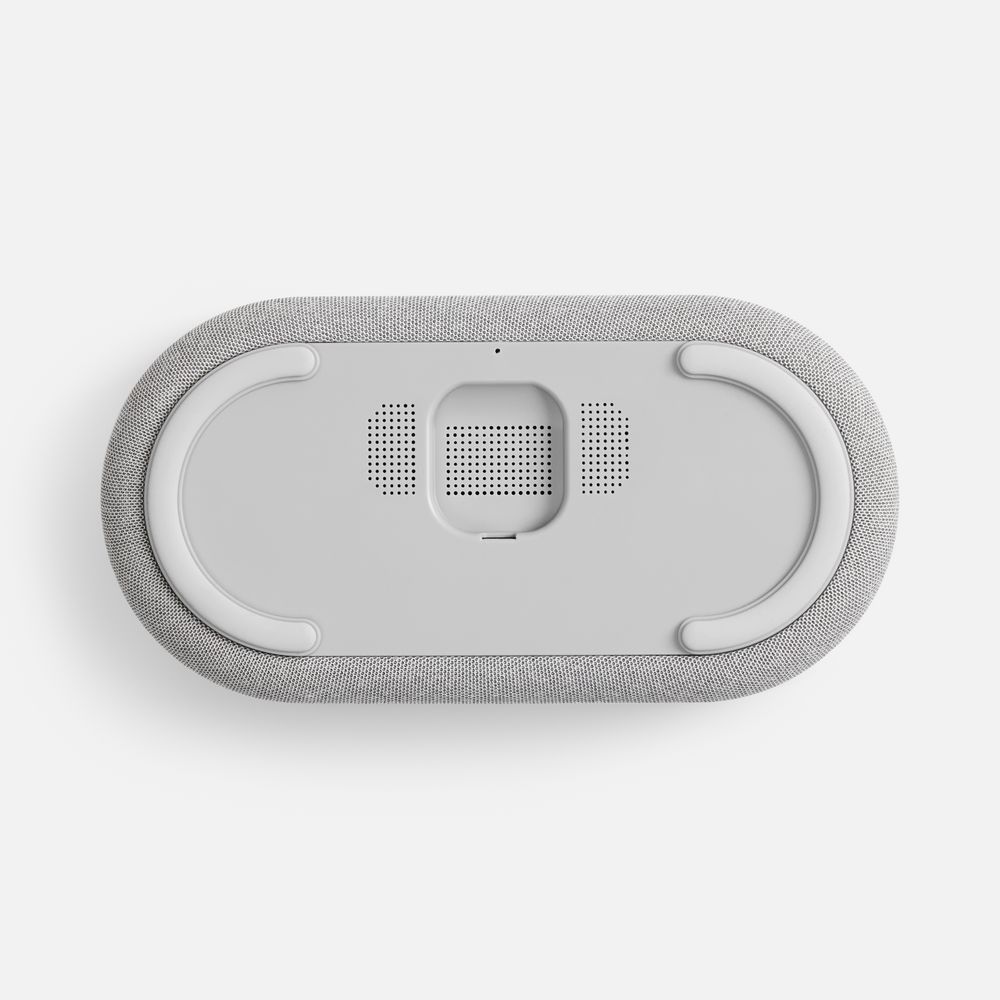 Veske — это Bluetooth-колонка с электронными часами, площадкой для беспроводной зарядки смартфона и подсветкой.