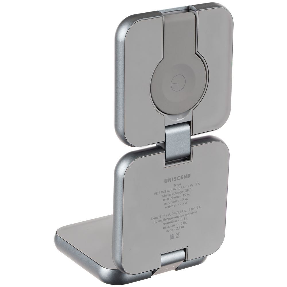 Складная станция беспроводной зарядки Terza, серебристая