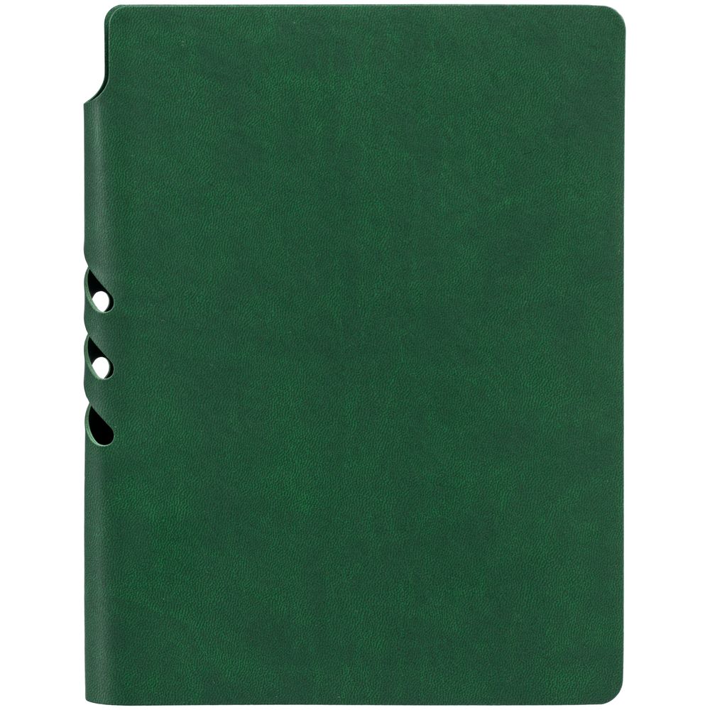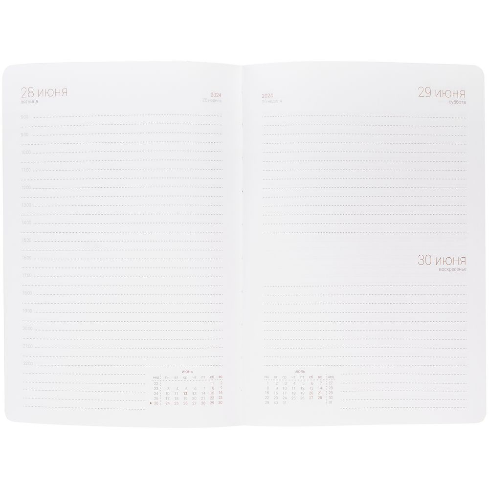 Гибкая обложка ежедневника выполнена из материала Latte, зеленый FF. Внутри корешка — специальное место для крепления ручки размером до 15х0,9 см.