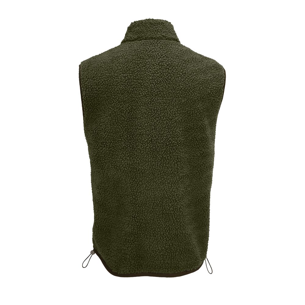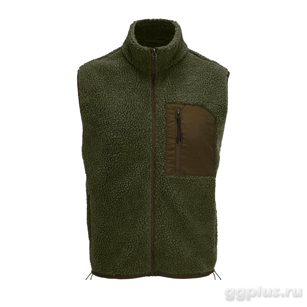 Жилет унисекс из фактурной искусственной шерпы с гладкой отделкой из таслана.